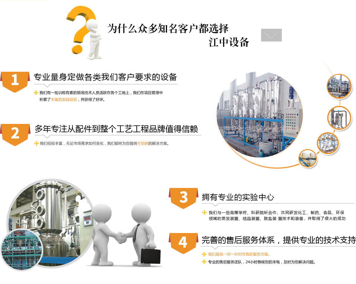 江陰市江中設(shè)備制造有限公司是一家專業(yè)從事蒸發(fā)、濃縮、提取、污水處理等設(shè)備的廠家。廣泛應(yīng)用于制藥、化工、食品、農(nóng)副產(chǎn)品深加 冶金、電子等多個領(lǐng)域。產(chǎn)品遍及全國三十余個省、市、區(qū),并遠銷歐美及東南亞一些國家和地區(qū)。公司實力雄厚,匯聚了一批高層次、高素質(zhì) 的專業(yè)人才,一直致力于產(chǎn)品的開發(fā)、生產(chǎn)和管理,并十分注重科技創(chuàng)新,所生產(chǎn)的設(shè)備受到用戶的青睞。